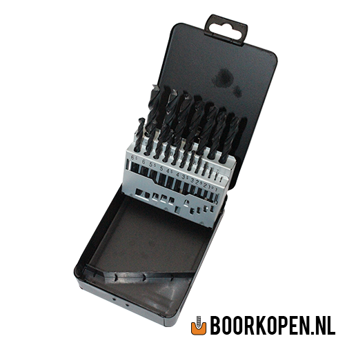 Onze HSS rolgewalste borenset metaal bevat de standaard kwaliteit metaalboren. Bent u van plan om te boren in dikker of hardere metaalsoorten, dan is het verstandiger om gebruik te maken van onze betere kwaliteit geslepen metaalboren of zelfs onze borensets met gecoate metaalboren. Naast dit type metaalborenset bieden we namelijk diverse andere soorten aan.