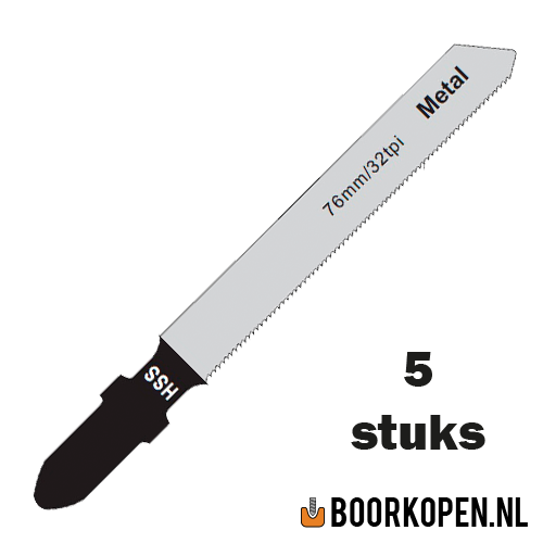 Zaagblad decoupeerzaag voor metaal. De werklengte van het zaagblad is 50mm, de totale lengte is 76mm. De vertanding is 32TPI (32 tanden per inch) en is geschikt voor metaal. Hoe groter het TPI getal is, des te fijner de vertanding. Fijne vertanding gebruikt u als de zaagsnede fijn afgewerkt dient te zijn , een klein TPI getal, dus grove vertanding gebruikt u voor het grove werk. Bij grove vertanding kunt u ook dikker materiaal zagen. Bij hard materiaal kunt u beter een zaag nemen met meer tanden. Het decoupeerzaagblad voor metaal heeft een T-aansluiting, let erop of uw decoupeerzaag geschikt is voor deze aansluiting, sommige decoupeerzagen werken alleen met een U-aansluiting. De prijs is per verpakking van 5 stuks.