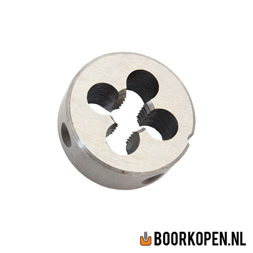 Snijplaat M18, DIN EN22568. Deze snijplaat is rechtssnijdend en voor het tappen van metrische uitwendige M18 draad. Schroefdraad spoed 2,5mm. De M18 snijplaat is geschikt voor gebruik in onze snijramen. Buitendiameter 45mm, dikte 18mm. Uiteraard vindt u bij ons ook de andere maten van de snijplaat.