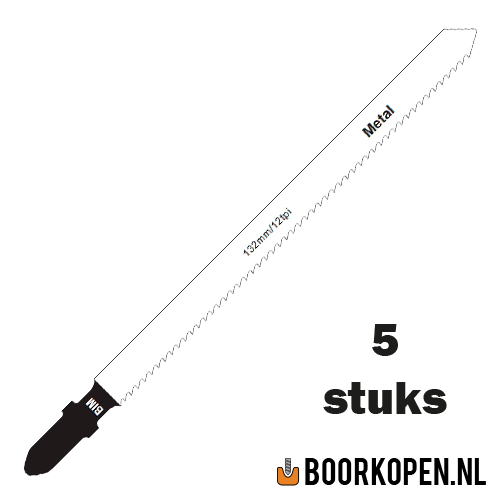 Zaagblad decoupeerzaag voor metaal, longlife uit Bi-metaal. De werklengte van het zaagblad is 100mm, de totale lengte is 132mm. De vertanding is 12TPI (12 tanden per inch) en is geschikt voor metaal. Hoe groter het TPI getal is, des te fijner de vertanding. Fijne vertanding gebruikt u als de zaagsnede fijn afgewerkt dient te zijn, een klein TPI getal, dus grove vertanding gebruikt u voor het grove werk. Bij grove vertanding kunt u ook dikker materiaal zagen. Bij hard materiaal kunt u beter een zaag nemen met meer tanden. Het decoupeerzaagblad voor metaal heeft een T-aansluiting, let erop of uw decoupeerzaag geschikt is voor deze aansluiting, sommige decoupeerzagen werken alleen met een U-aansluiting. De prijs is per verpakking van 5 stuks.